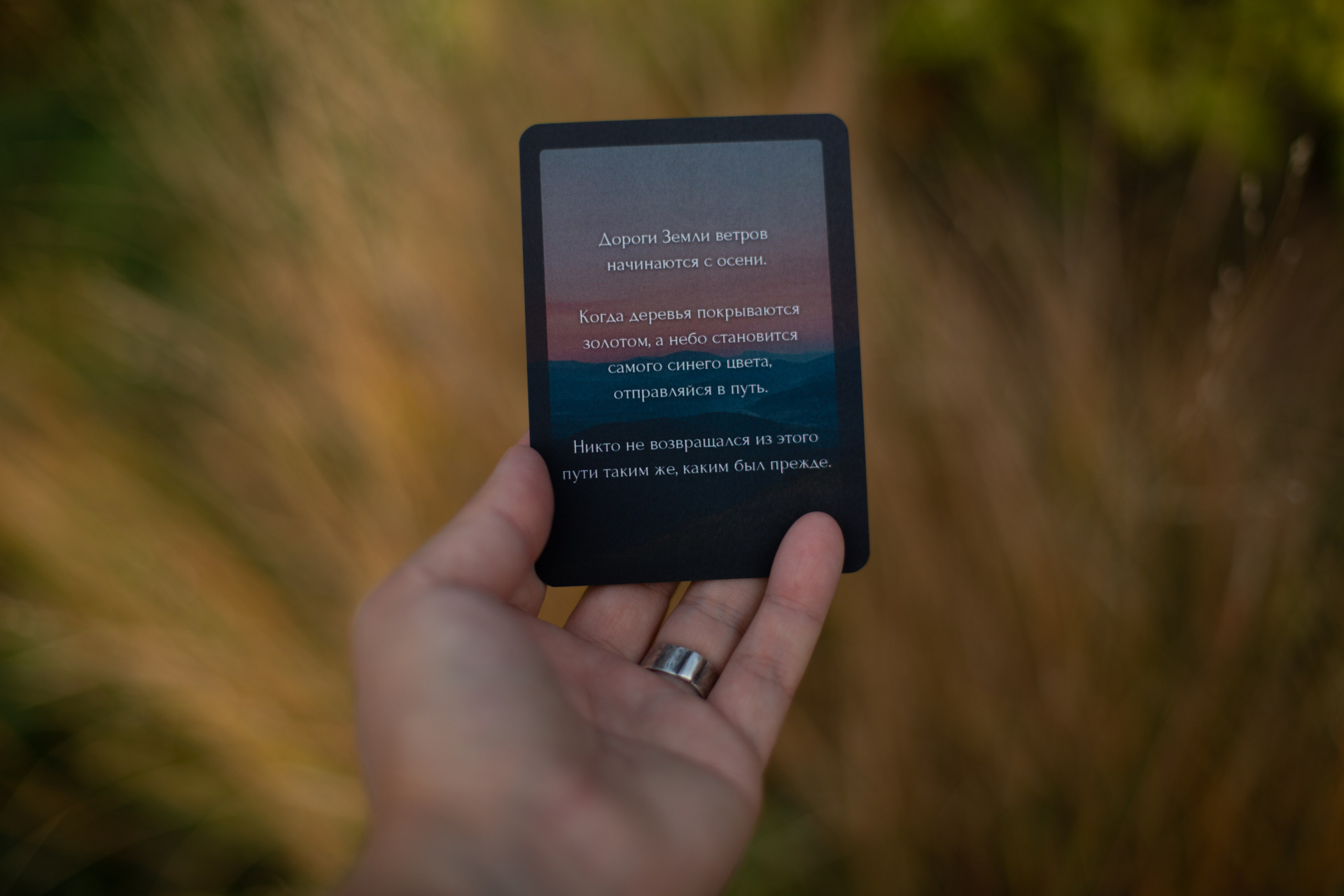 В каждой карте не только фотография, но и маленькая сказка о самом важном, что может случиться с человеком в пути: об изменениях, о том, где искать совета, а где ресурс, где найти силу и как пережить бессилие.